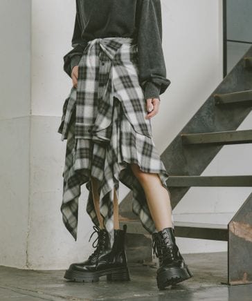 チェックシャツレイヤーフウスカート