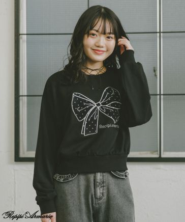 【girly line】【洗えるニット】Petiteロゴニット