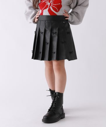 【10C REPIPI】フェイクレザーリボンスカート