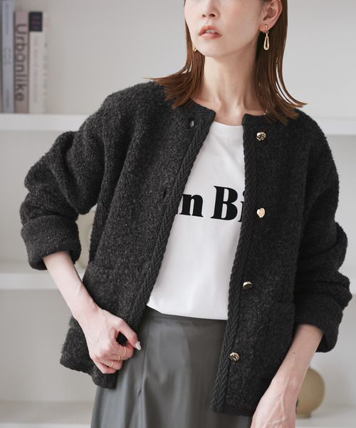 ループ編みニットカーディガン