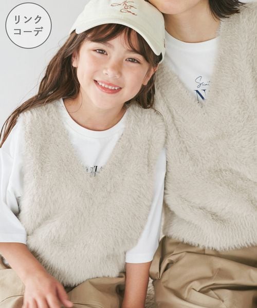 【KIDS/キッズ】ラメショートフェザーニットベスト/リンクコーデ