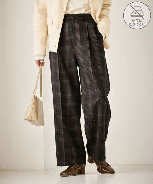 裏起毛無地&チェックアソートワイドパンツ/防シワ