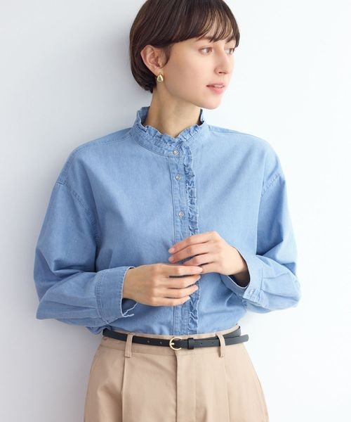 シャンブレーフリルシャツ/イージーケア