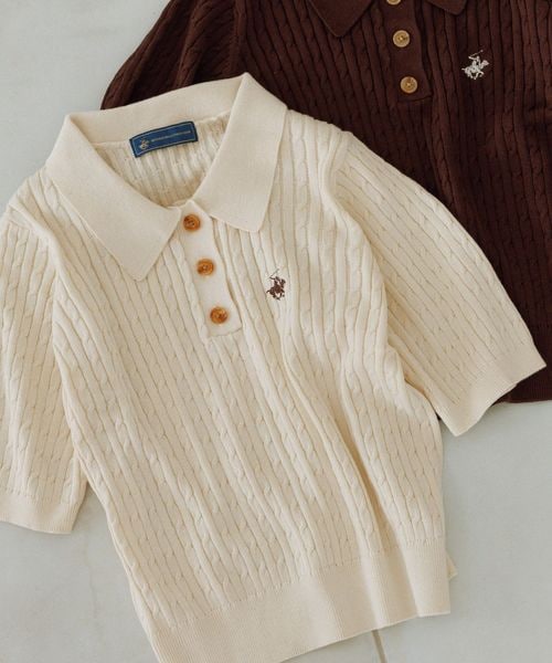 【BEVERLY HILLS POLO CLUB別注】ポロカラーケーブルニット/リンクコーデ