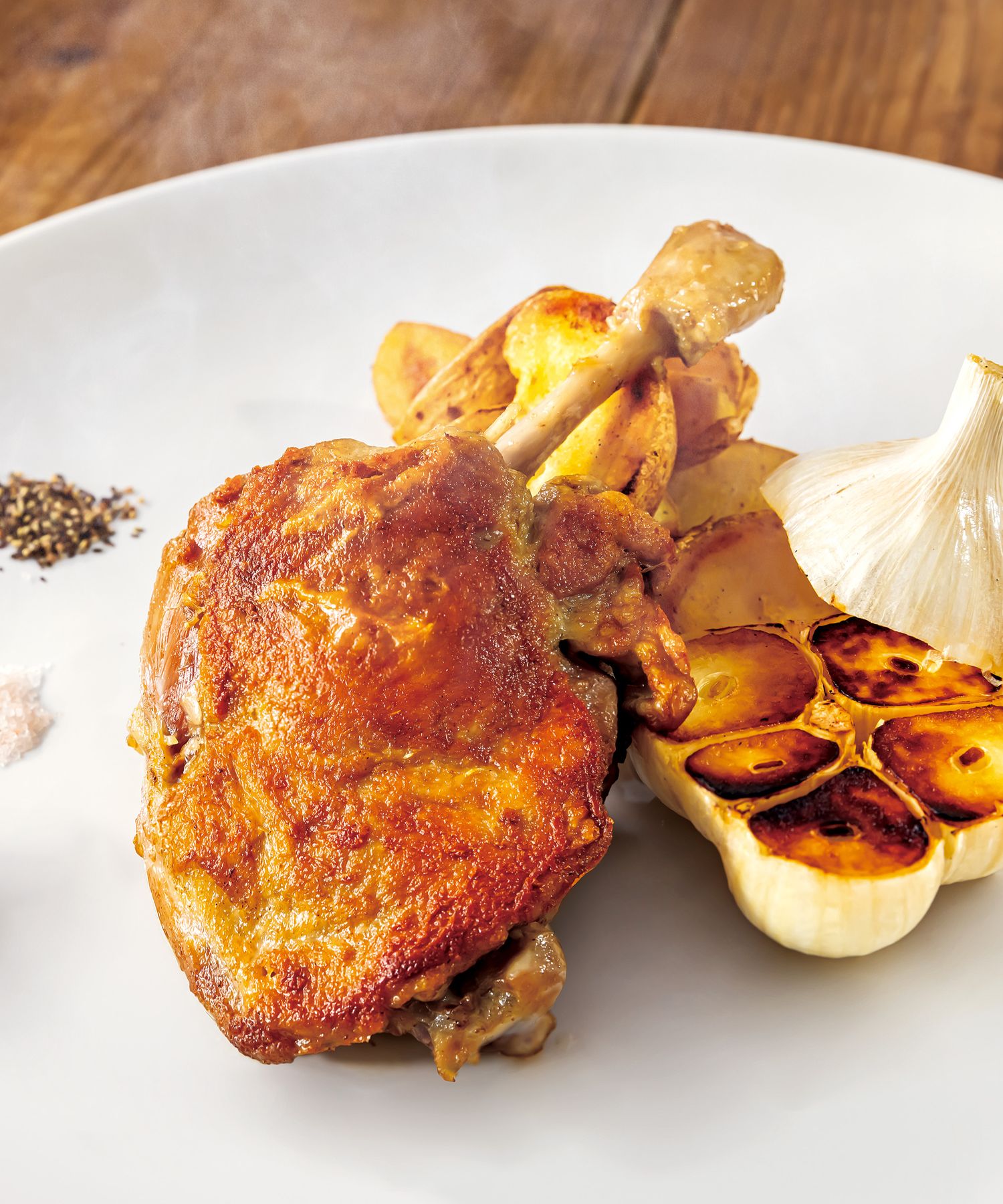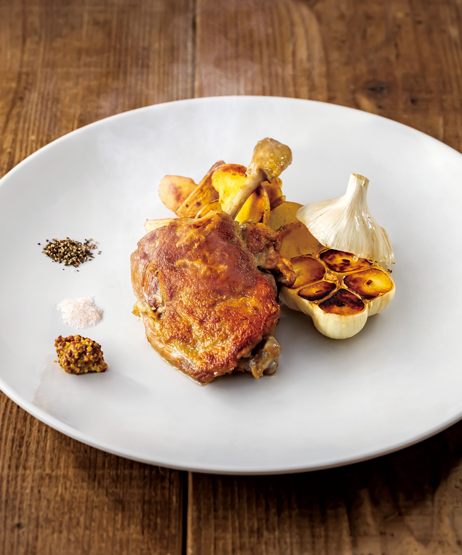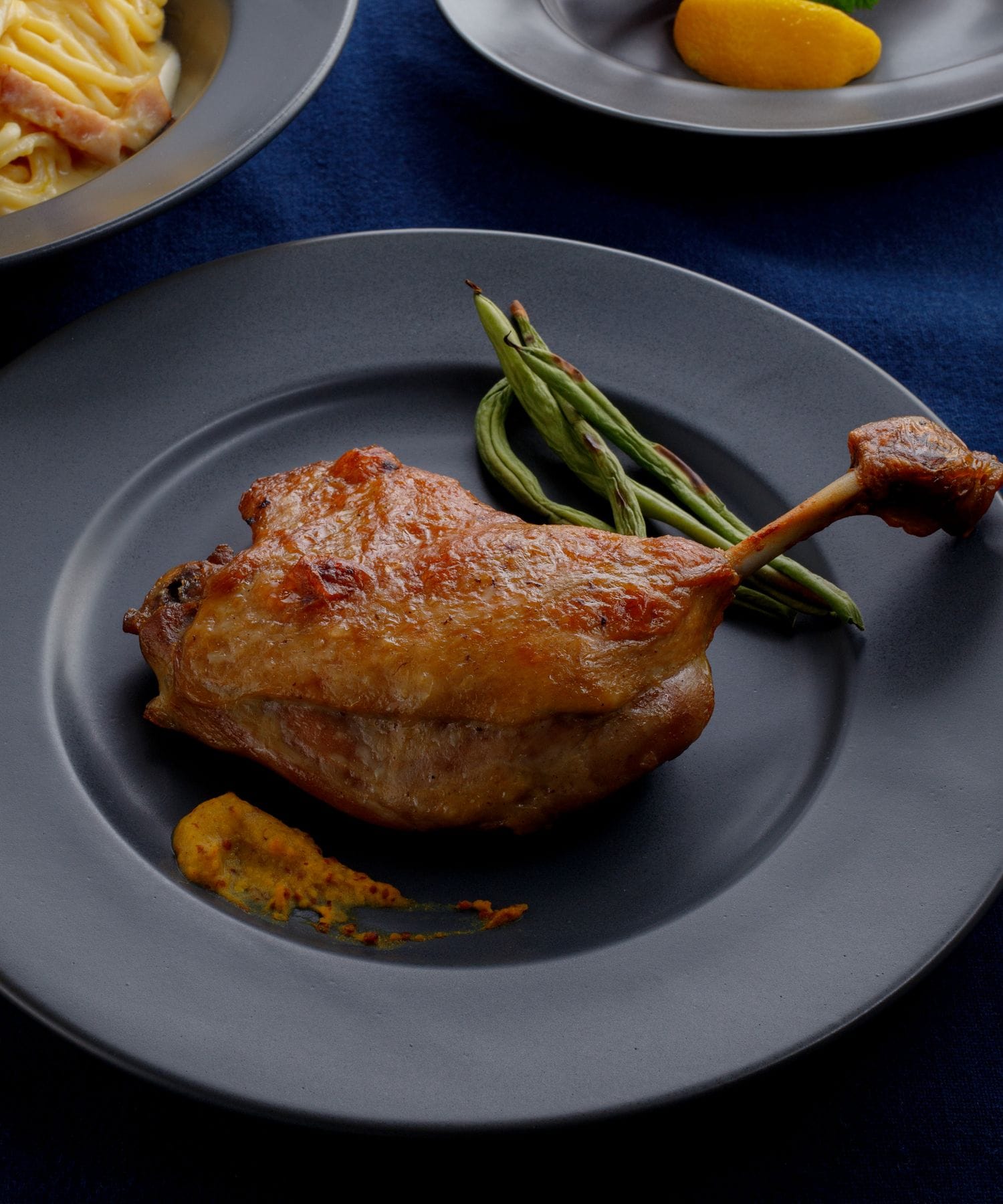レストランでも提供している鴨のコンフィは食材をオイルに漬けてじっくりと火を入れるフランスの伝統的な調理法で、