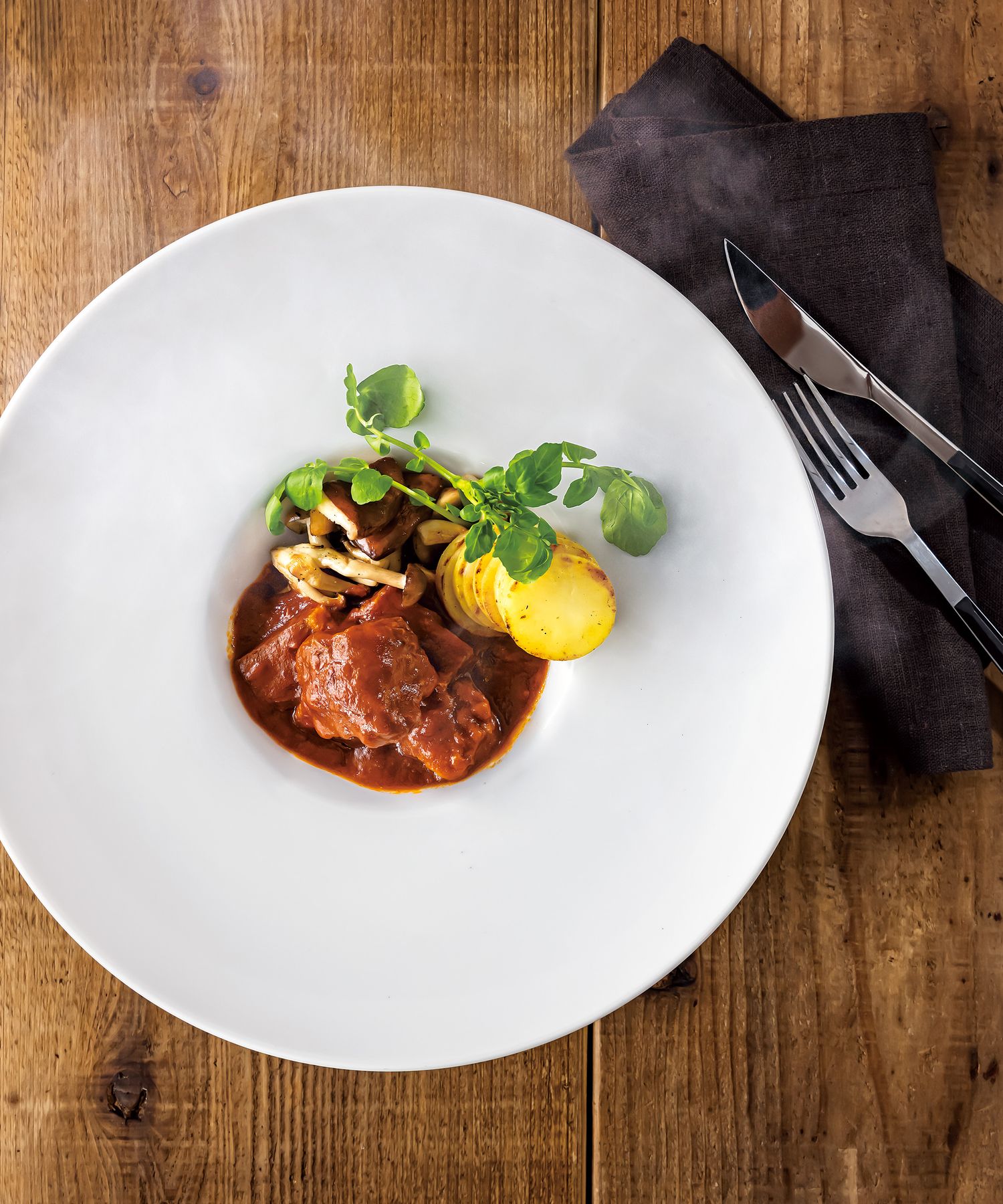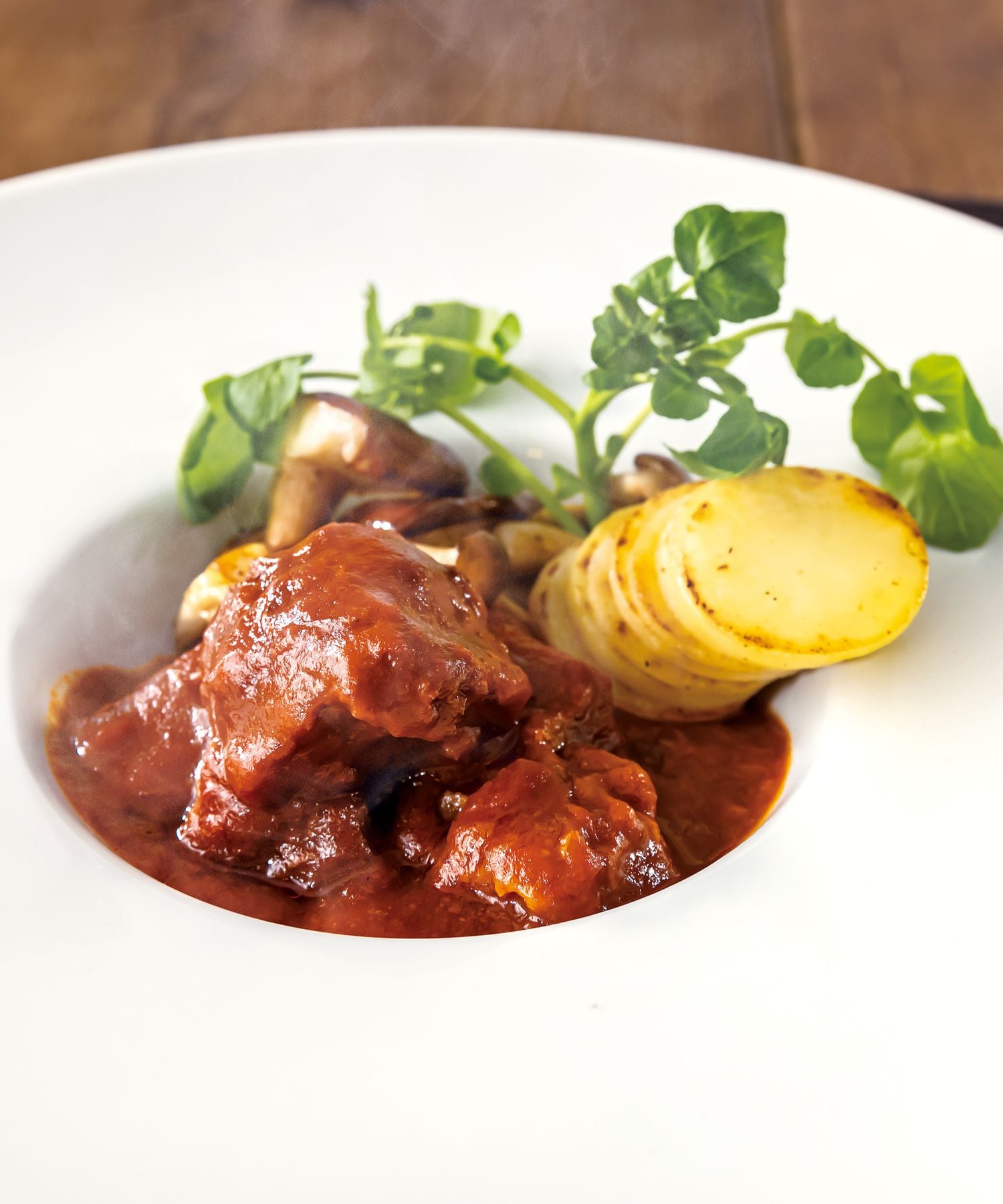 レストラン特製のデミグラスソースで時間をかけてじっくり煮込んであるのでお肉は柔らく牛肉の旨みが詰まったビーフシチューです。