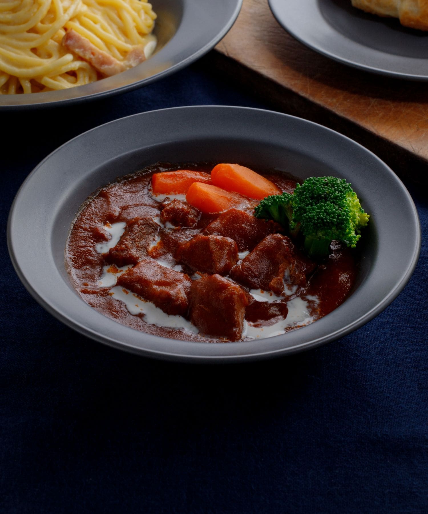 温めるだけで食べられる、家族みんなで楽しめるビーフシチューです。