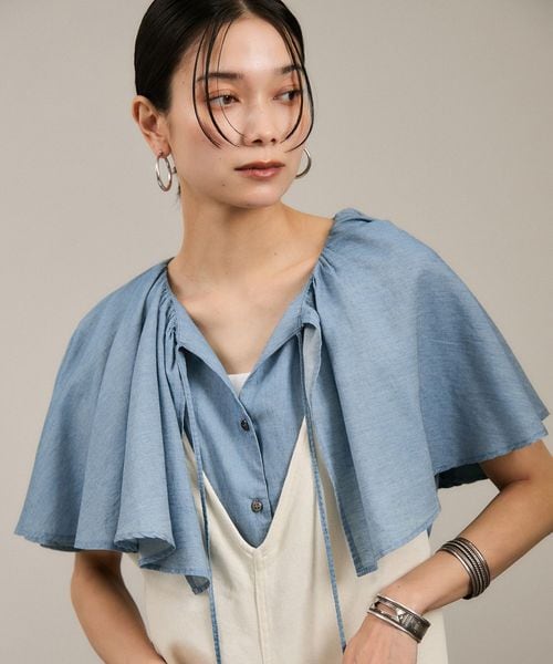 【WEB限定】デニムフリルカラーノースリーブブラウス