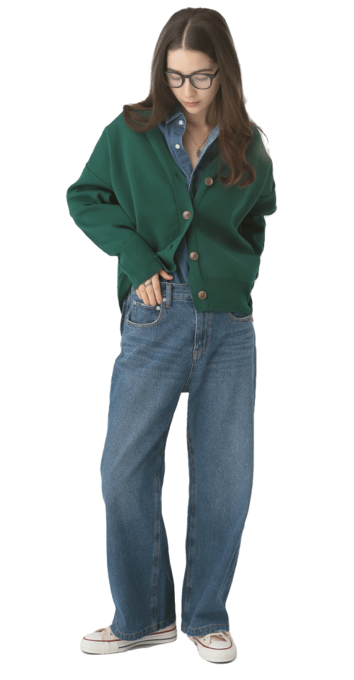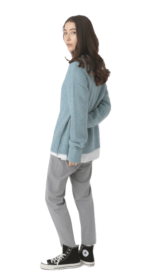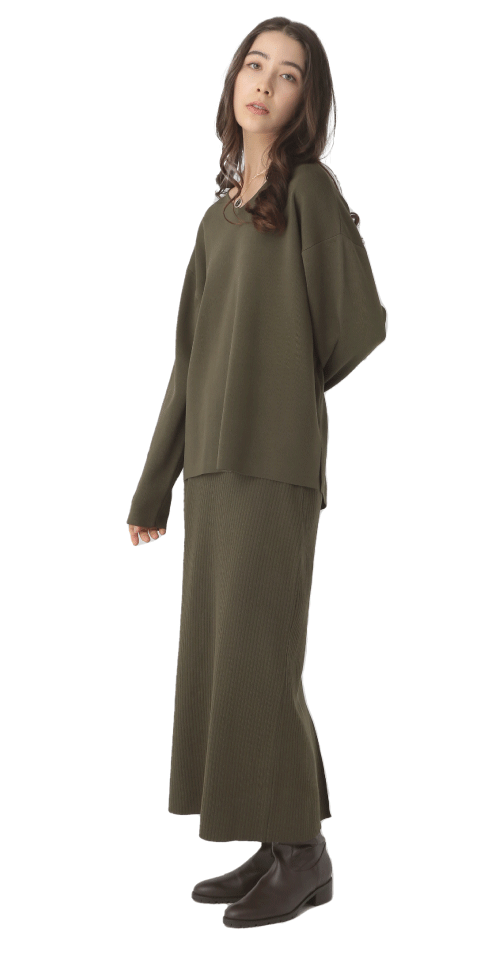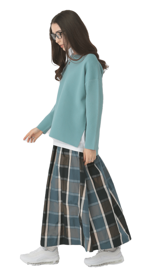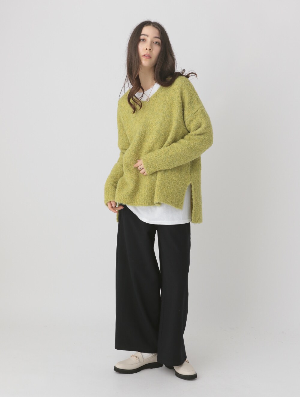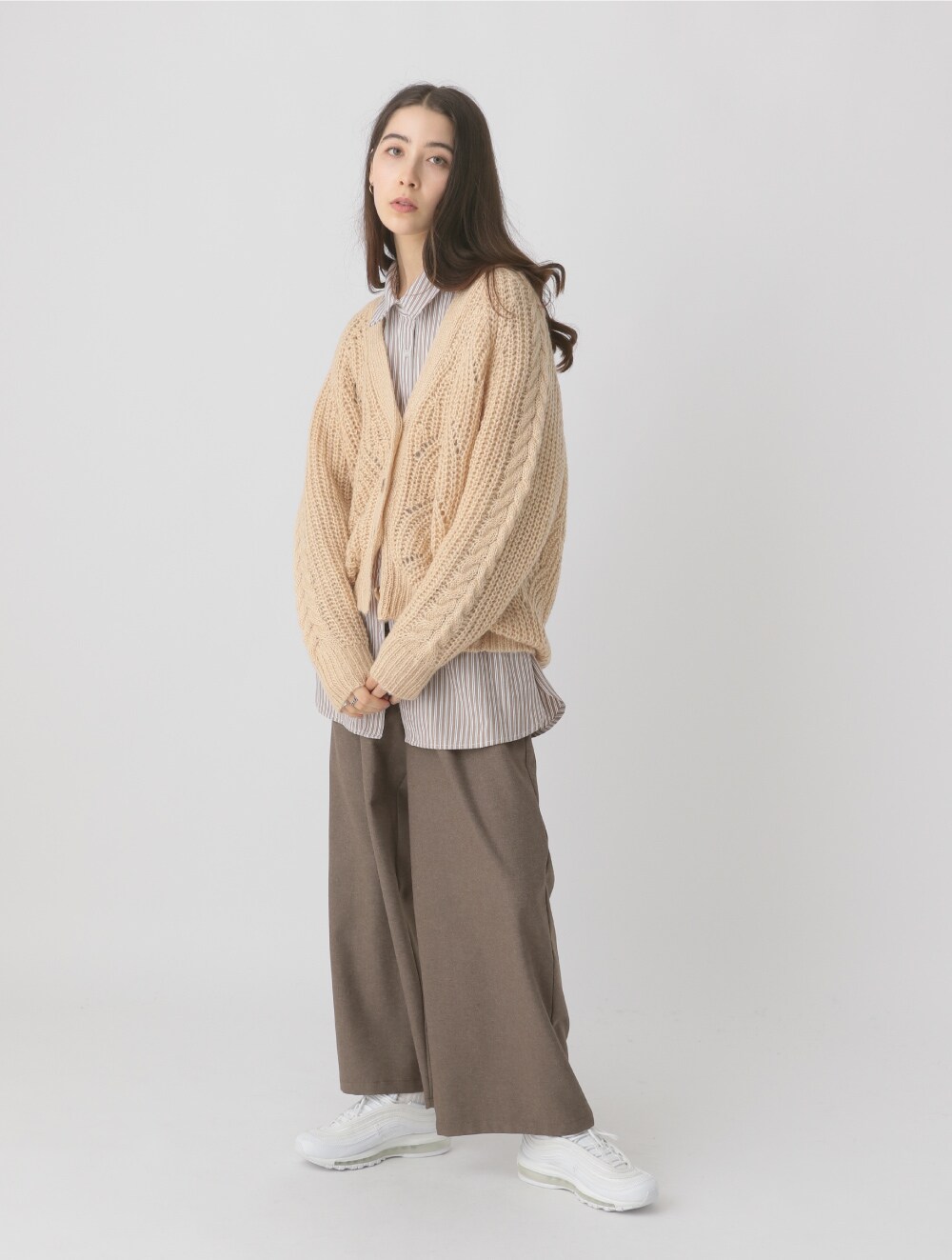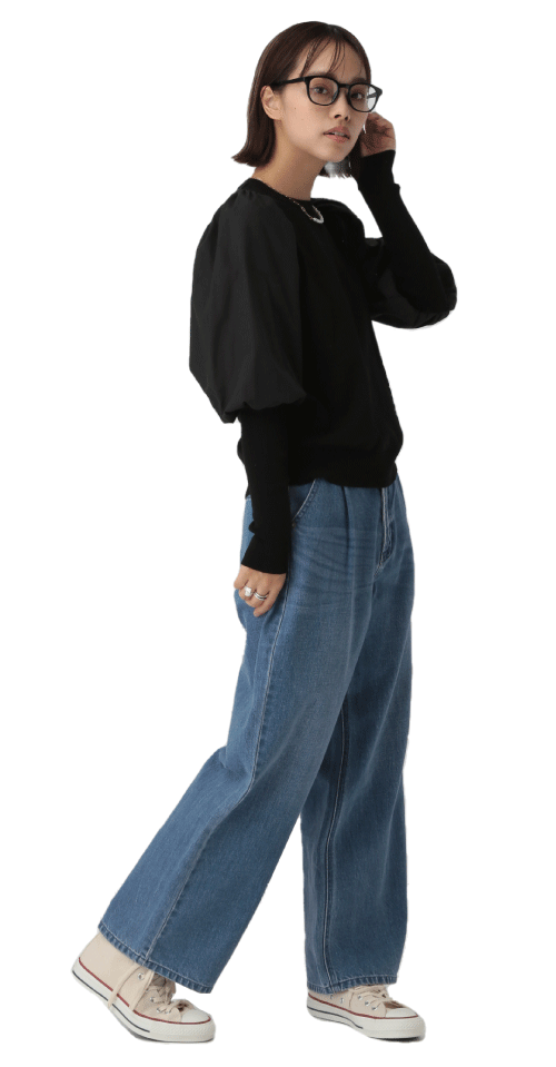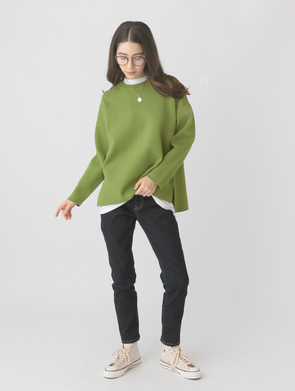 ゆるっと抜け感のあるスタイルでやわらかな動きのある素材と合わせてみて。