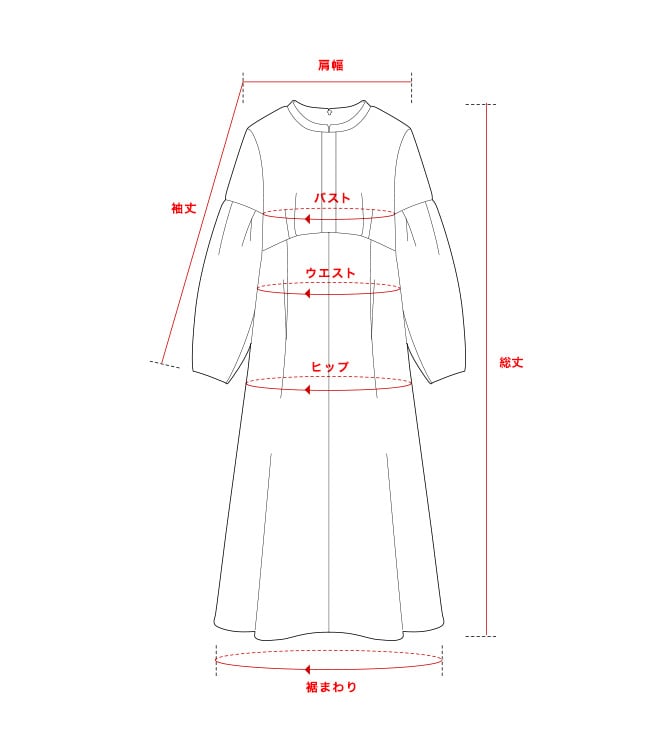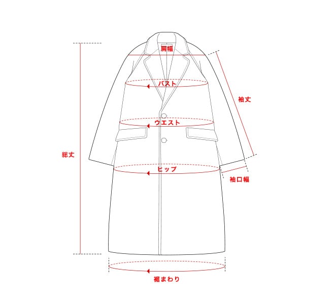 • 商品やアイテムによっては、SIZE GUIDEに記載のない箇所の採寸を行う場合がございます。あらかじめご了承ください。
