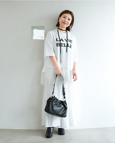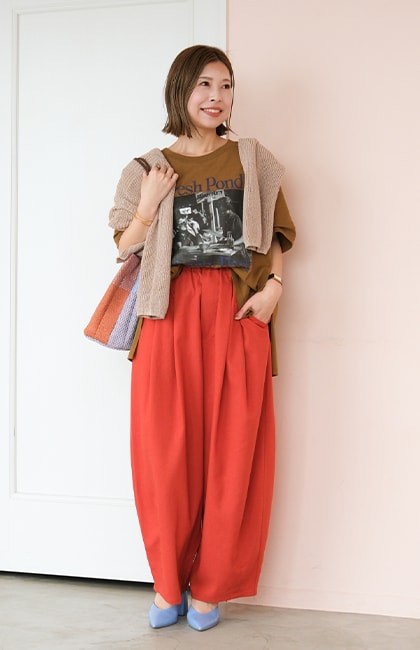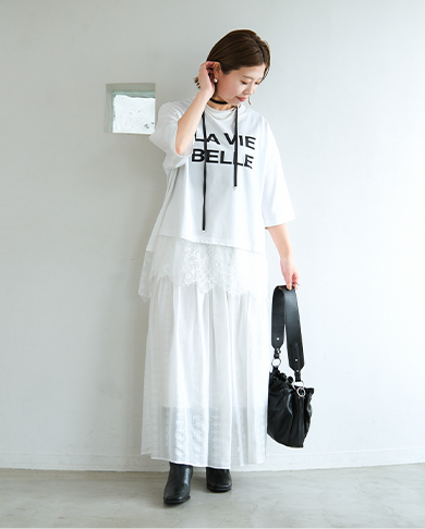 パンツやスカートなどボトムスを選ばないデザインに。