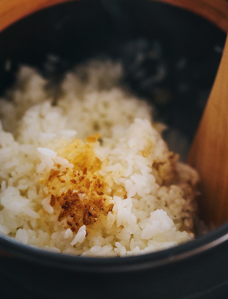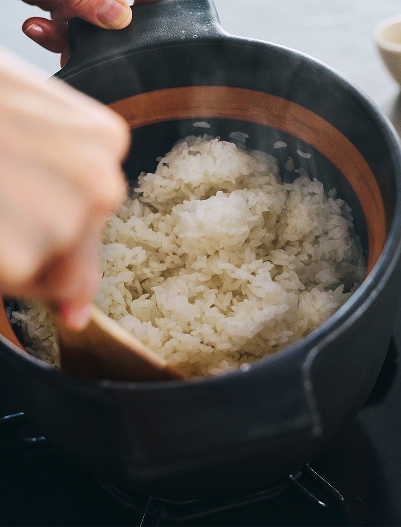 「しゃもじ」でほぐしながら、かき混ぜてください。