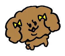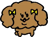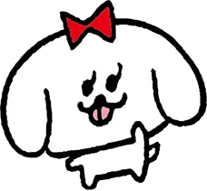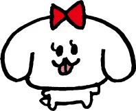 クールな性格で、大きな赤いリボンが特徴のメスの雑種犬。