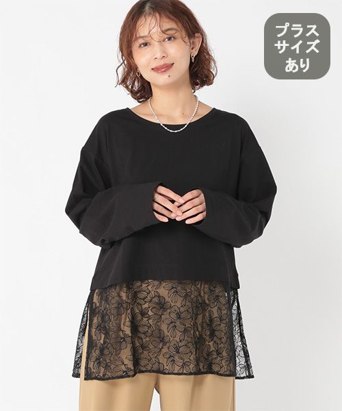 裾レース切り替えインナープルオーバー[プラスサイズあり]