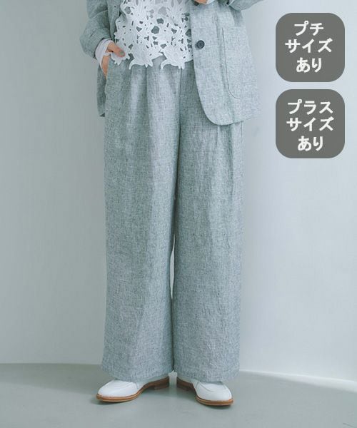 【リネン100%】リネンツータックストレートパンツ[プチ・プラスサイズあり]