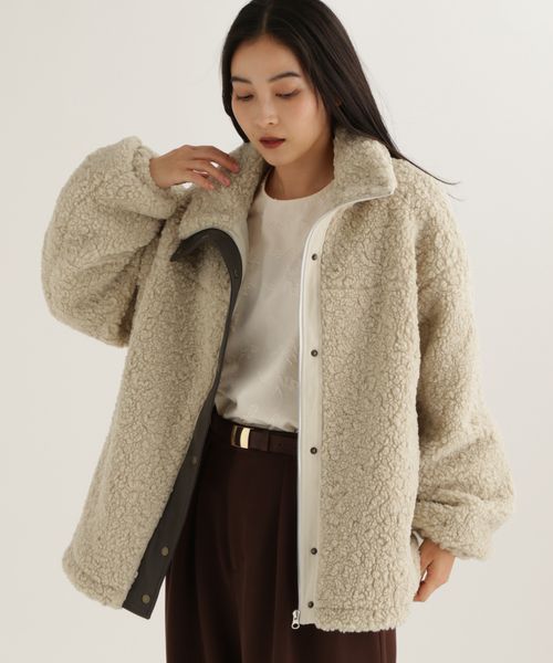 【先行予約/daily CLIP】フェイクレザー切り替えボアジャケット