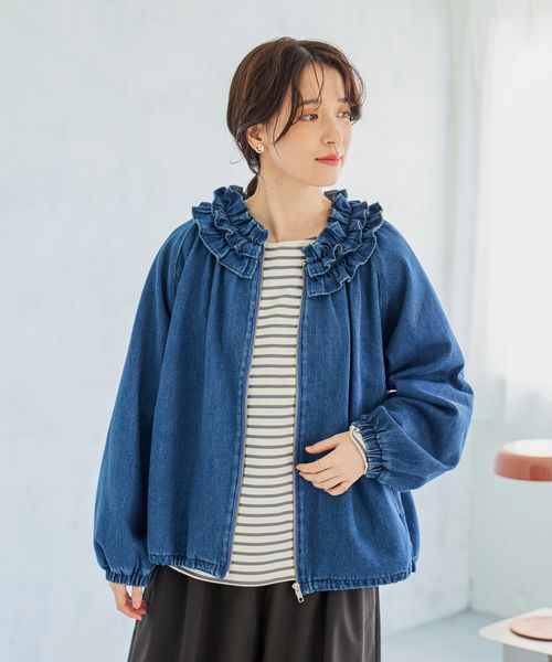 【新色・追加カラー予約】フリルカラー甘織りデニムシャツブルゾン《CLIP denim》