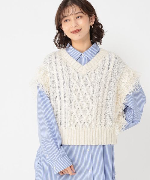 3ゲージフリンジニットベスト