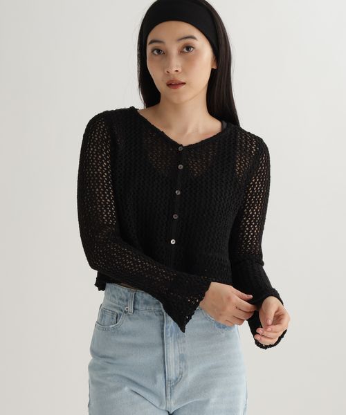 【先行予約/daily CLIP】メッシュニットフリルカーディガン