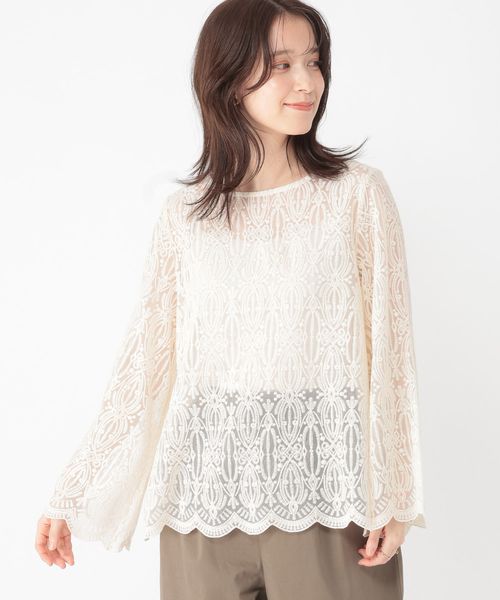 ベルスリーブレースブラウス
