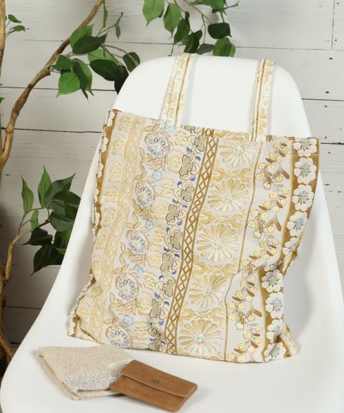 フラワー刺繍プリントトート