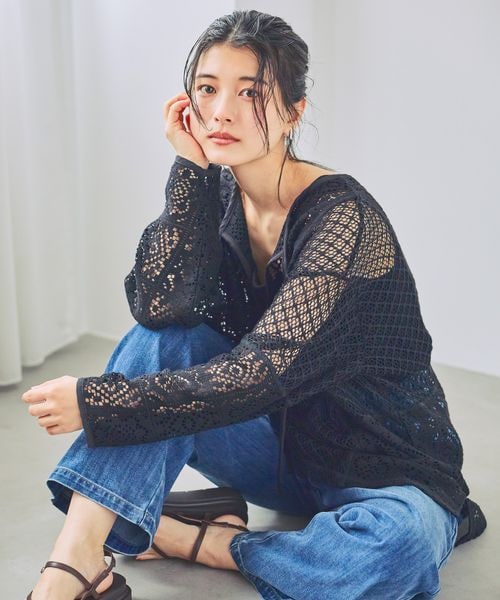 【新色予約】レース切り替えスキッパープルオーバー