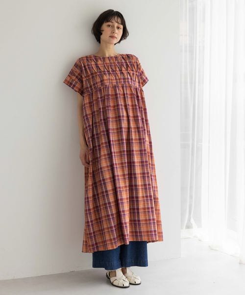 《先行予約/natural by clip》チェックハンドタックワンピース