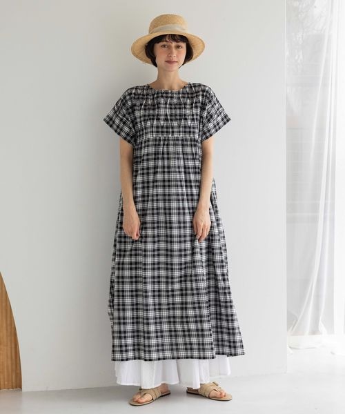 《先行予約/natural by clip》チェックハンドタックワンピース