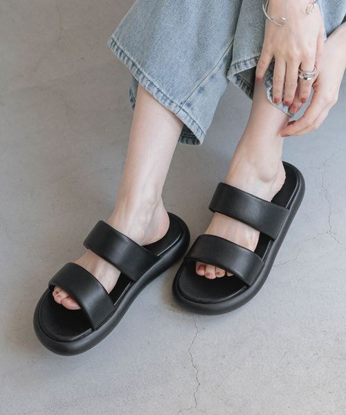 【軽量/クッションインソール】柔らかWベルト厚底サンダル