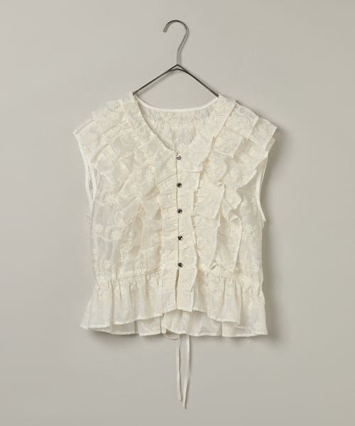 【先行予約/daily CLIP】刺繍フリフリノースリーブブラウス