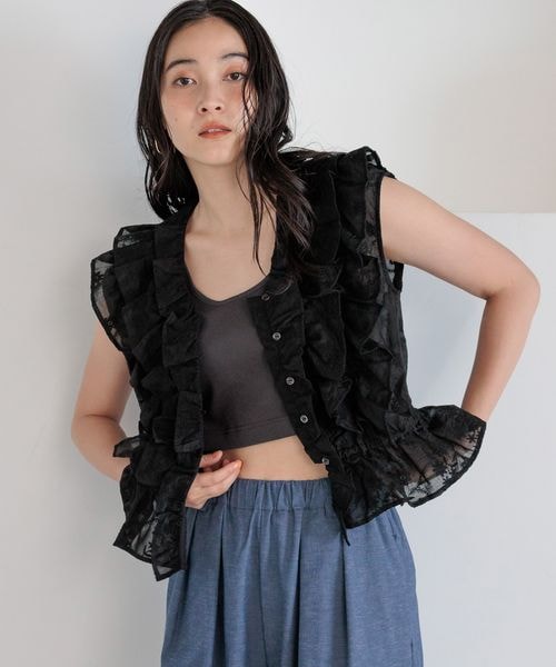 【先行予約/daily CLIP】刺繍フリフリノースリーブブラウス