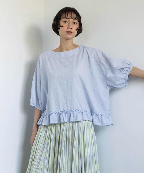 《先行予約/natural by clip》前後2WAYカットドビーフレンチブラウス