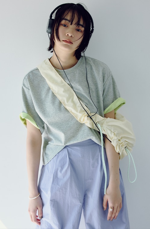 【新色予約/daily CLIP】レイヤード風ヘンリーショートスリーブ