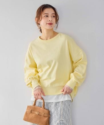 【新色追加】袖シアー切り替えクルーネックプルオーバー