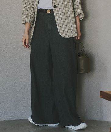 【一部カラーSALE】タックストレートデニムパンツ[プチ・プラスサイズあり]《CLIP denim》
