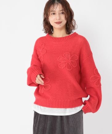 3ゲージクラフト刺繍フラワーニットプルオーバー
