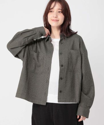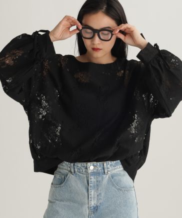 ダブルフロント袖ジャカードパフスリーブブラウス