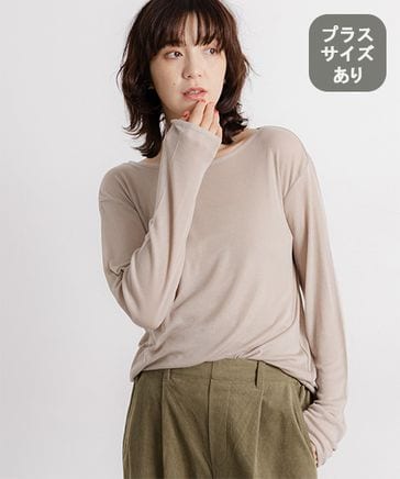 【吸湿発熱・吸放湿性】ウールミックスシアーボートネックシアープルオーバー[プラスサイズあり]