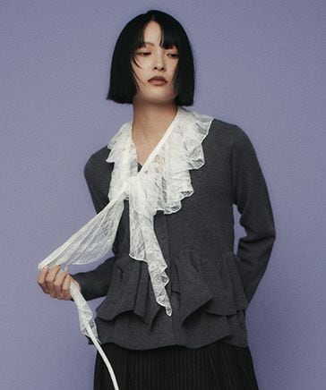 5ゲージダブルフロントブークレリボンニットカーディガン