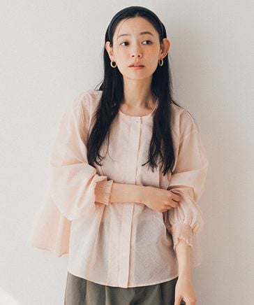 シアーストライプフレアブルゾンブラウス
