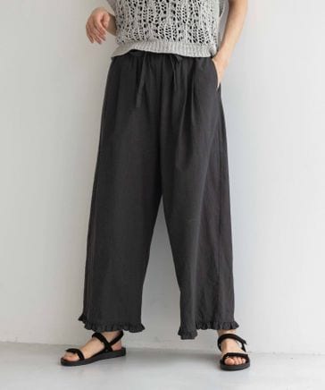 《先行予約/natural by clip》コットンリネン裾フリルパンツ