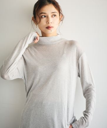 【吸湿発熱・吸放湿性】ウールミックスシアーハイネックプルオーバー[プラスサイズあり]