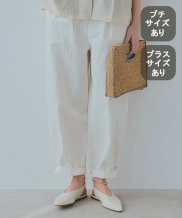 コットンサテンゆるテーパードパンツ[プチ・プラスサイズあり]