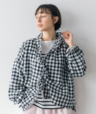 【WEB先行予約】《natural by clip》リネン混チェックフリルブラウス