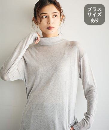 【吸湿発熱・吸放湿性】ウールミックスシアーハイネックプルオーバー[プラスサイズあり]