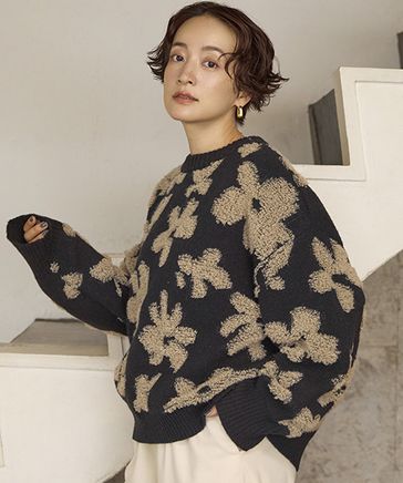 7ゲージパイルジャガード花柄ニットプルオーバー