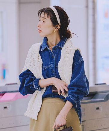 甘織りデニムオーバーシャツジャケット《CLIP denim》