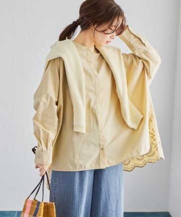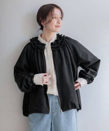 【新色・追加カラー予約】フリルカラー甘織りデニムシャツブルゾン《CLIP denim》