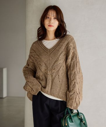 7ゲージパイルジャガード花柄ニットプルオーバー