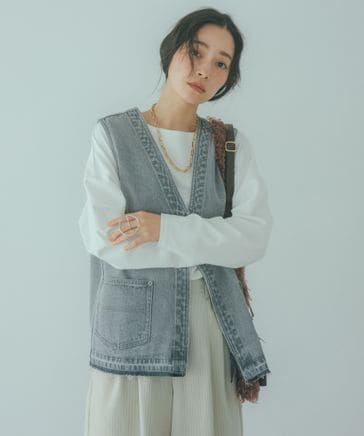 《natural by clip》7ゲージニットベスト×シャツワンピース